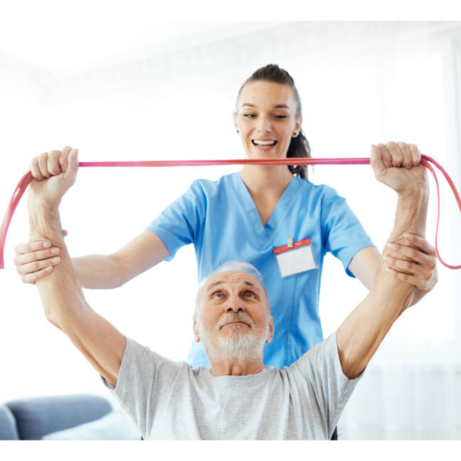 Our Physical Therapy services help patients regain mobility, strength, and independence following illness, injury, or surgery. Our licensed physical therapists create personalized rehabilitation plans focused on improving physical function and preventing further decline — all from the comfort of home.