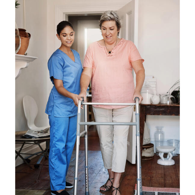 Our Physical Therapy services help patients regain mobility, strength, and independence following illness, injury, or surgery. Our licensed physical therapists create personalized rehabilitation plans focused on improving physical function and preventing further decline — all from the comfort of home.